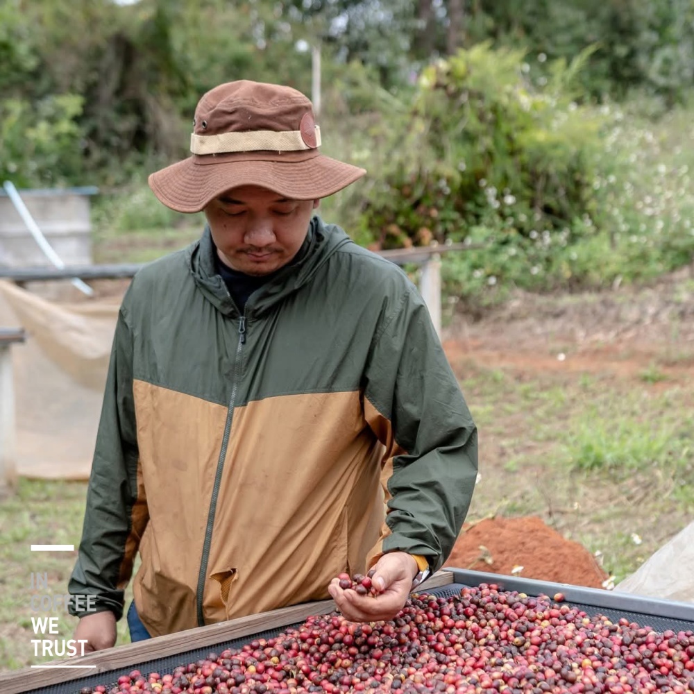 샌차이(Saenchai)는 2세대 젊은 농장주로 대다수 태국 커피 농장주가 그렇듯 소수민족인 카렌족입니다. 2025년 태국의 가장 영향력있는 커피인 10명에 뽑혔으며, 버번 품종으로 89.9 점의 높은 점수로 2025 태국 COE 3위를 기록한 농장입니다.